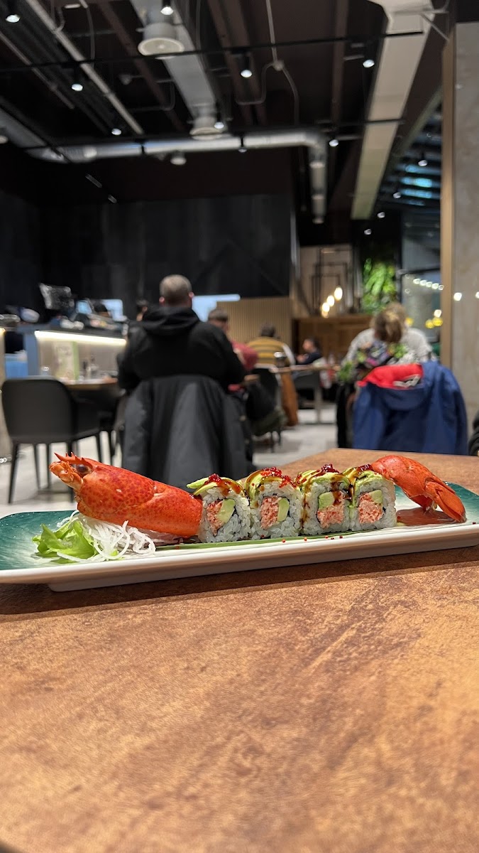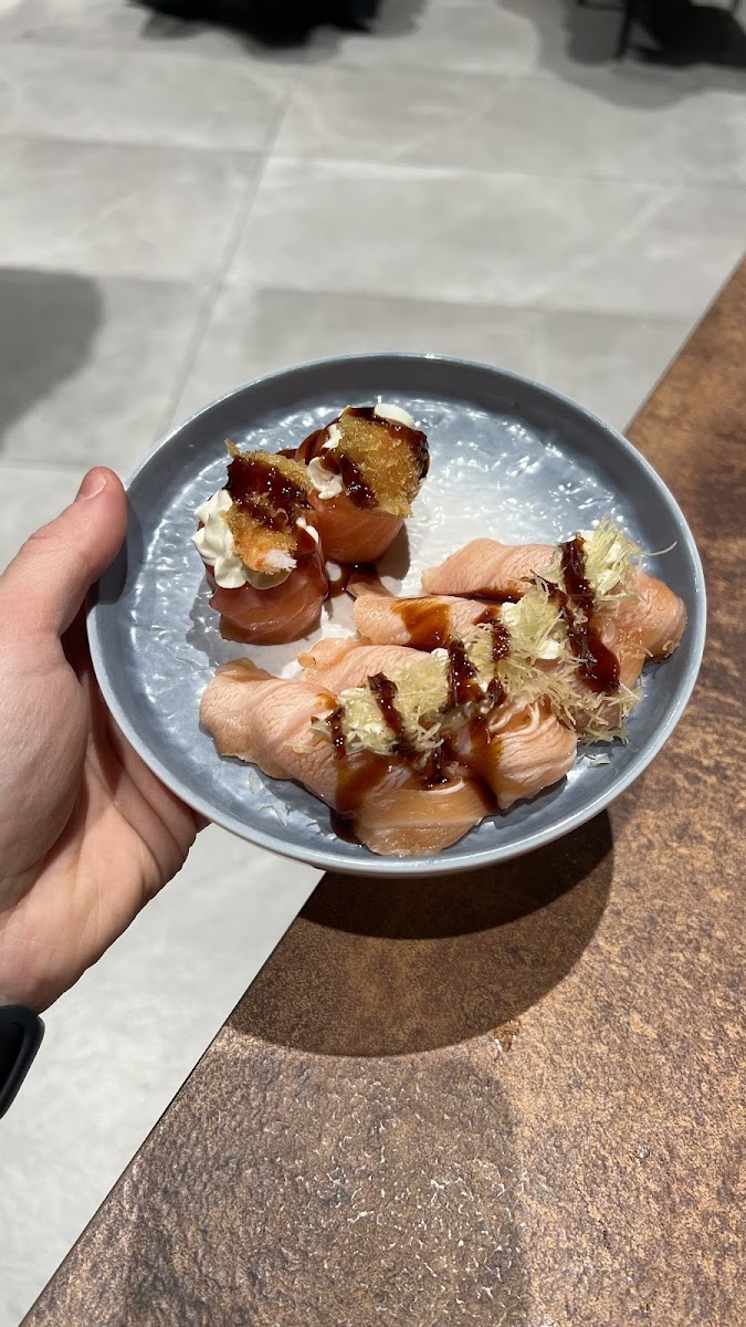 Locale carino ed accogliente, personale cortese eccellere nel servizio, il menù abbastanza vasto e con abbastanza opzioni di scelta, ordinazioni effettuate tramite tablet che viene fornito dalla sala, il cibo su alcune portate molto buono, soprattutto i fritti e i ravioli, un pochino meno i piatti di sushi, però comunque il pesce era fresco sicuramente se ci capiterà di fermarci a cena o a pranzo da quelle parti ci fermeremo, prezzo leggermente elevato, però comunque consigliato, dolci buoni