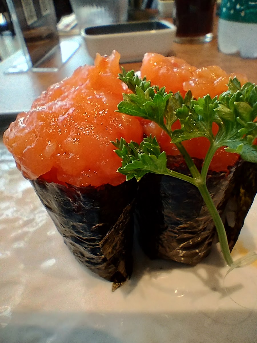 All'interno del centro commerciale settimo cielo nella zona adibita alla ristorazione c'è questo gradevole ristorante di Sushi, con stile moderno,pulito come è solito per questi tipi di ristoranti. Mi pare di capire che sia parte di un gruppi di altri tre locali nella zona Torino, e classico ordini con il tablet max 10 pietanze per volta e poi aspetti 10 minuti per il prossimo ordine. Formula all you can eat a 27 euro non compreso il bere, non si può fare lamentele sul cibo e sulla tempistica di servizio,niente da recriminare. C'è anche qualche portata extra tra cui potete scegliere. Ristorante valido,consigliato